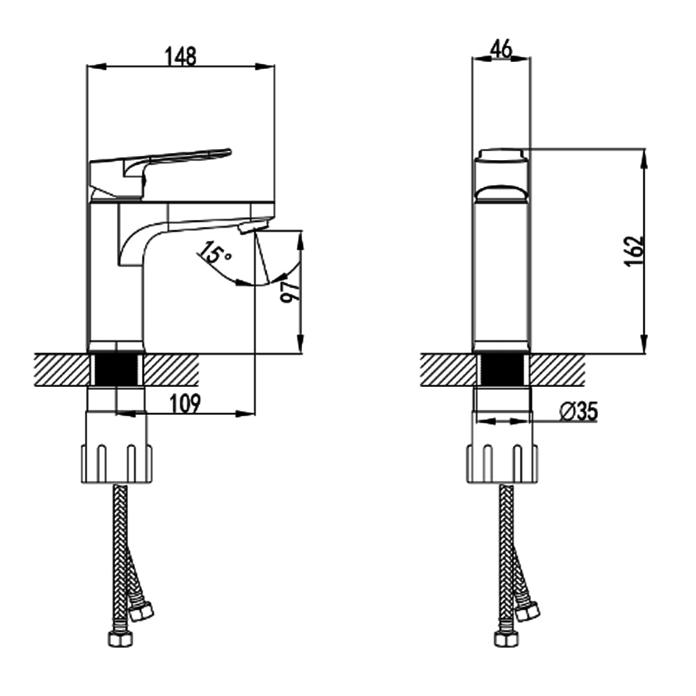 Комплектация: шланги для підведення води, змішувач, кріплення
