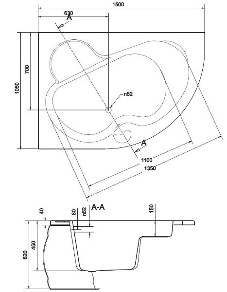 Ванна S301-003 ADRIA левая с ножками